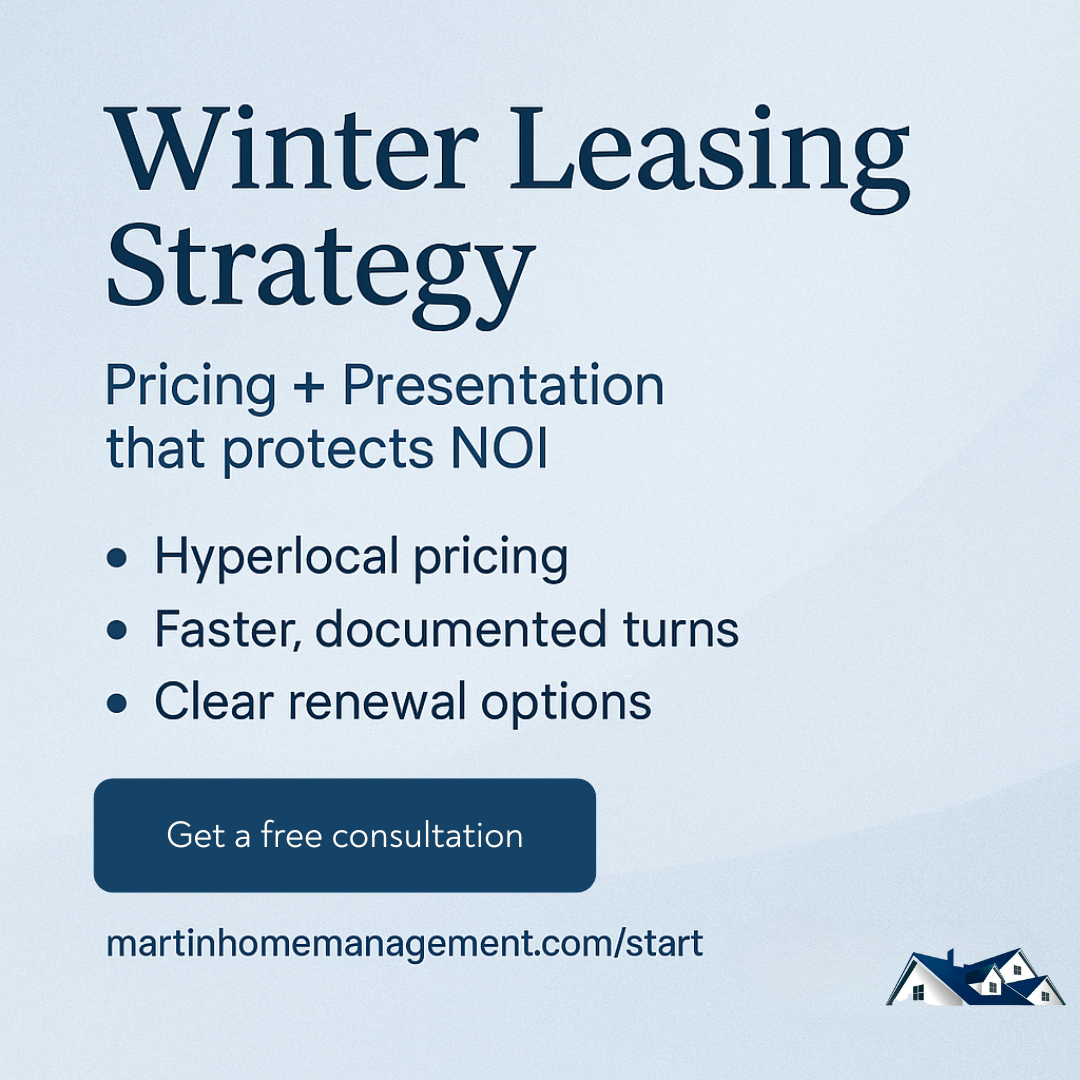 Winter Leasing Strategy Pricing, presentation, and renewals that keep things moving through winter—no guesswork, no reports needed.