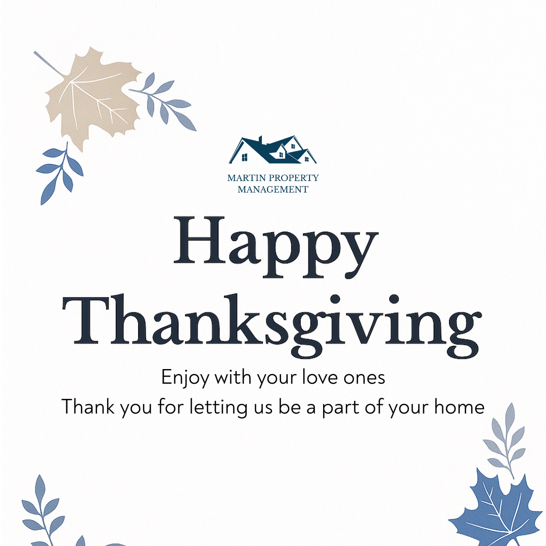 🦃 Happy Thanksgiving from Martin Property Management We're grateful for our residents, owners, vendors, and team. Wishing you and your loved ones a safe and joyful holiday.